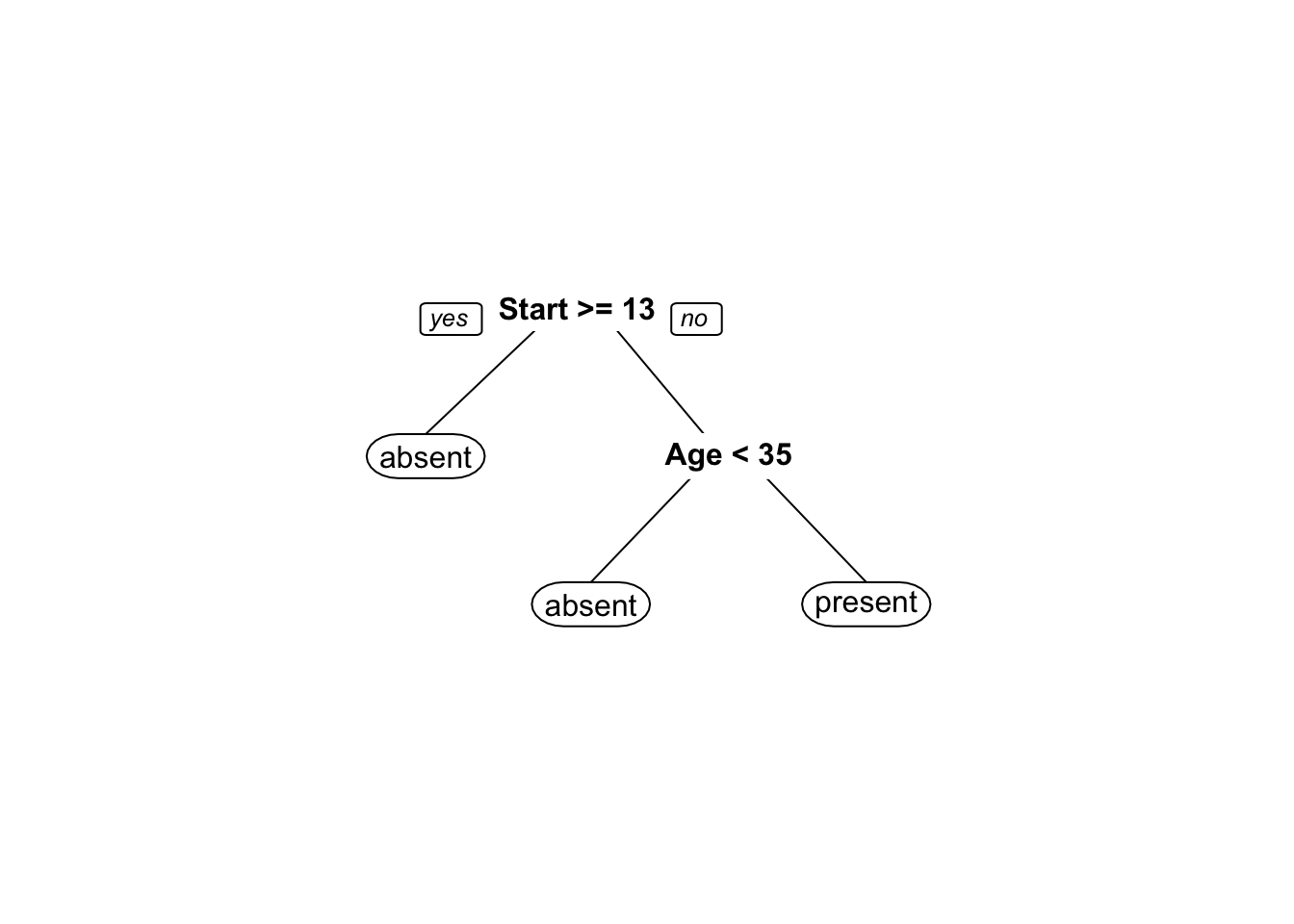 fit3 <- rpart(Kyphosis ~ Age + Number + Start, data = kyphosis,