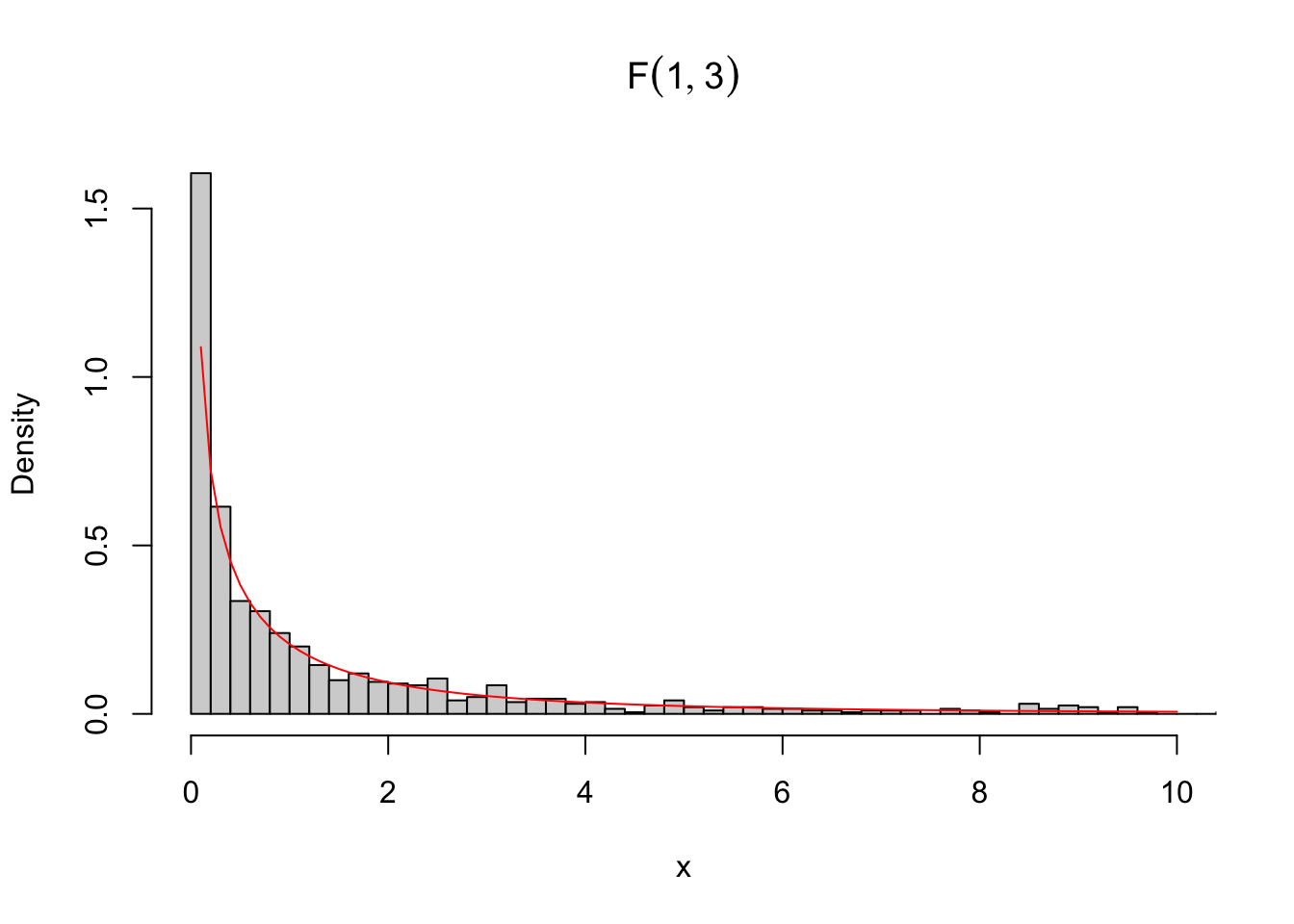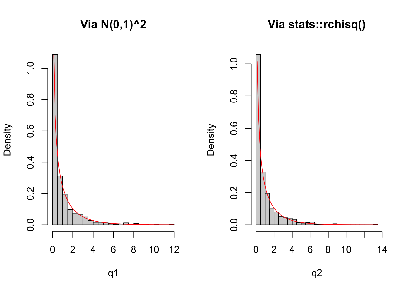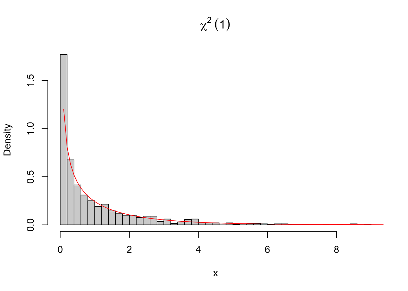 curve(dexp(x,2), add = TRUE, col = 'red')