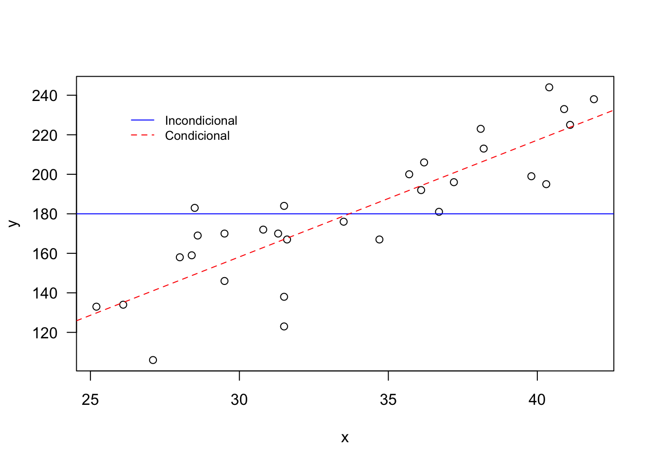 legend(26, 235, legend=c('Incondicional','Condicional'),