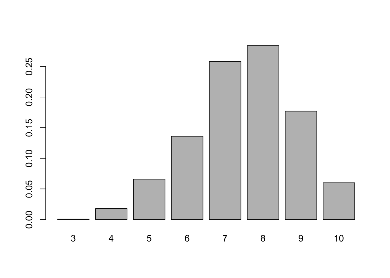 ## [1] 9.536743e-07 2.861023e-05 3.862381e-04 3.089905e-03 1.622200e-02 5.839920e-02 1.459980e-01