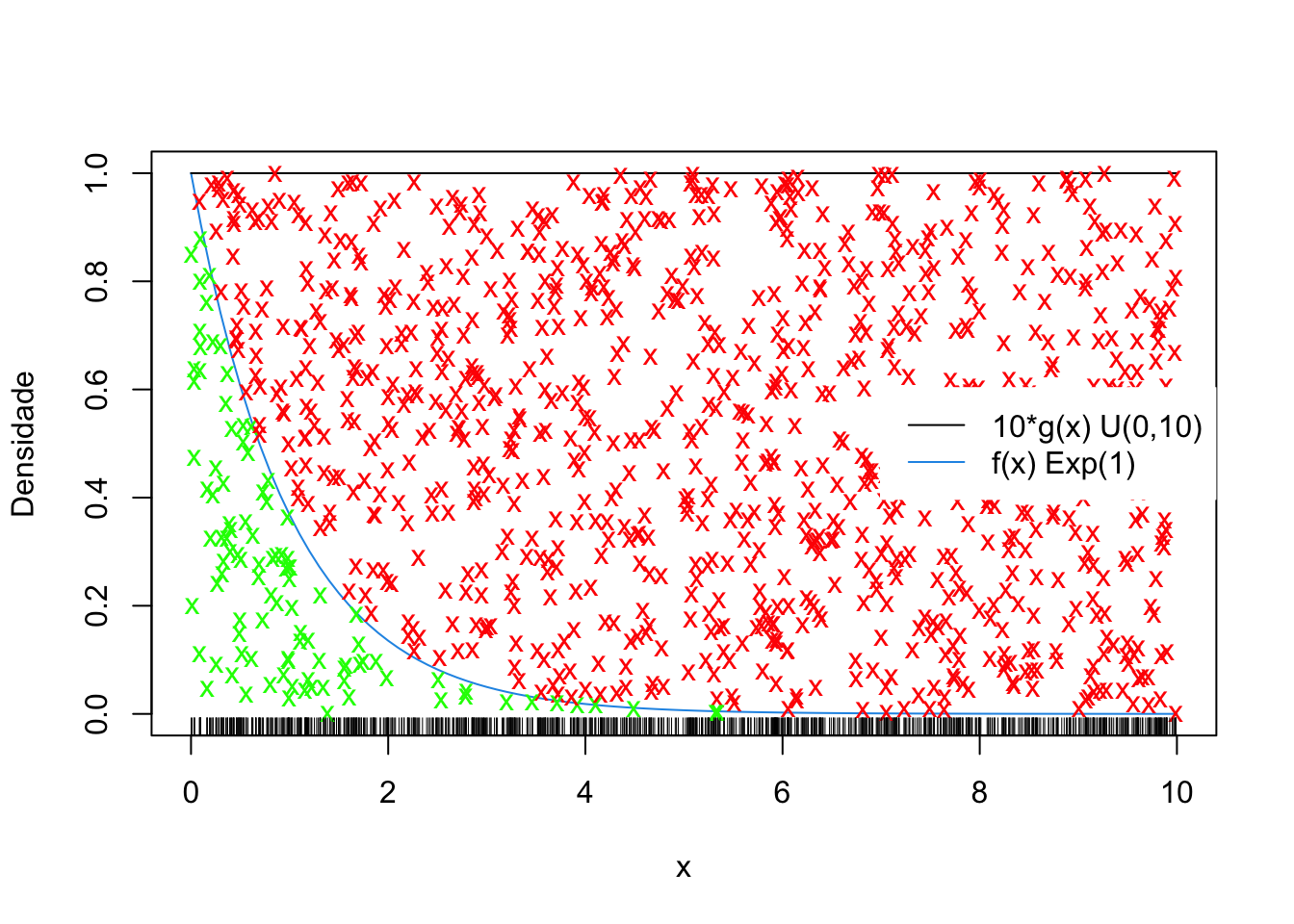 Pode-se obter uma amostra de tamanho \(M\) de uma densidade \(f\) e acumulada \(F(x) = \int_{-\infty}^{x} f(t) dt\) da seguinte maneira:
