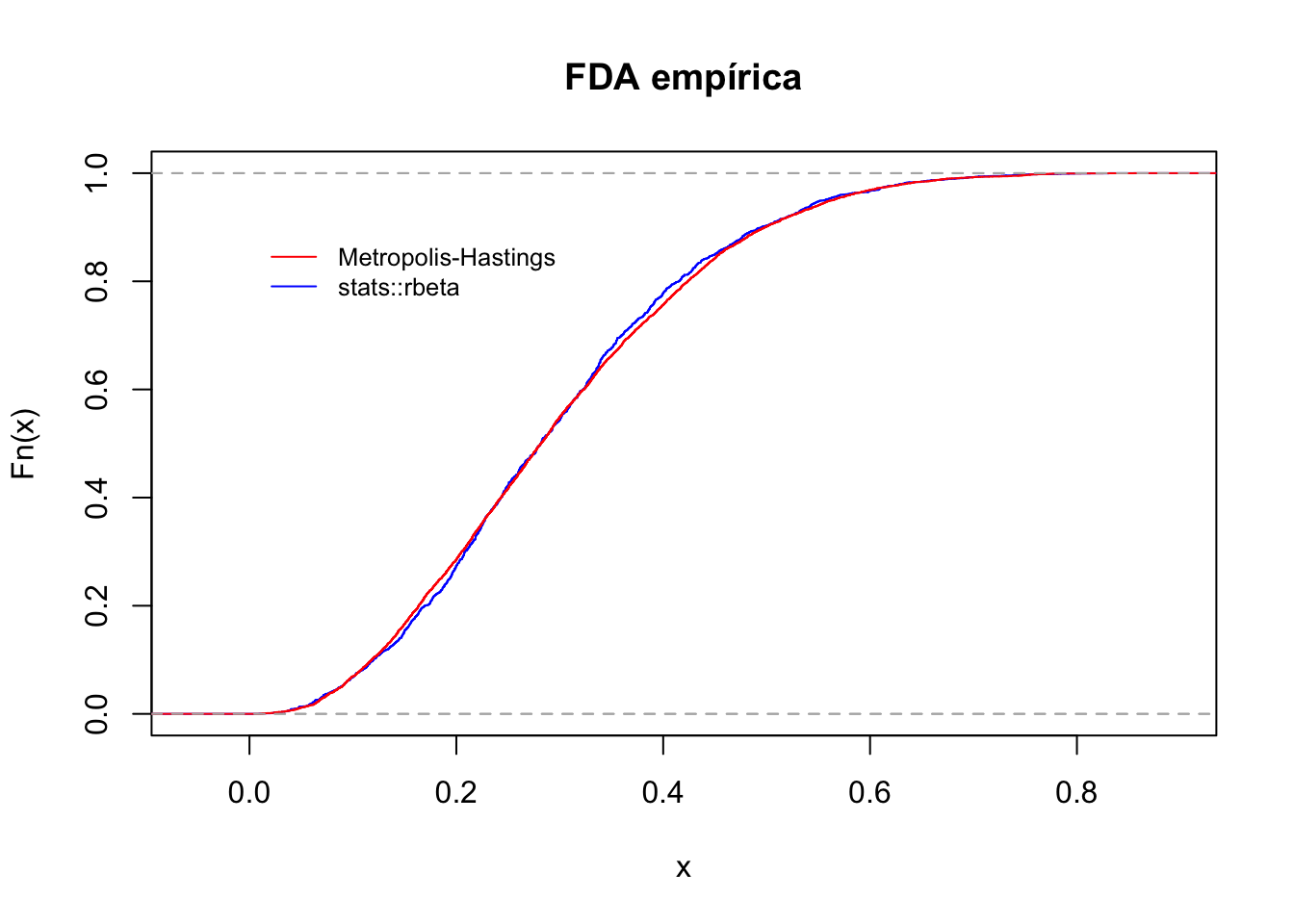 - Compare os métodos da rejeição e de Metropolis-Hastings quanto ao tempo de processamento. O que você percebe?