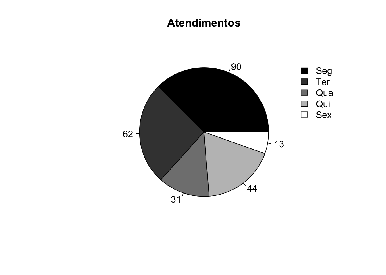 atend <- c(90,62,31,44,13) # Número de atendimentos