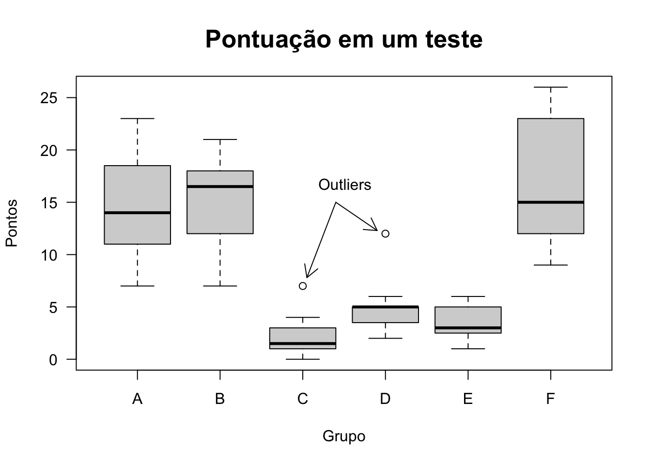 plt.annotate('Outliers', xy=(3.4, 15), xytext=(2.85, 18.5),