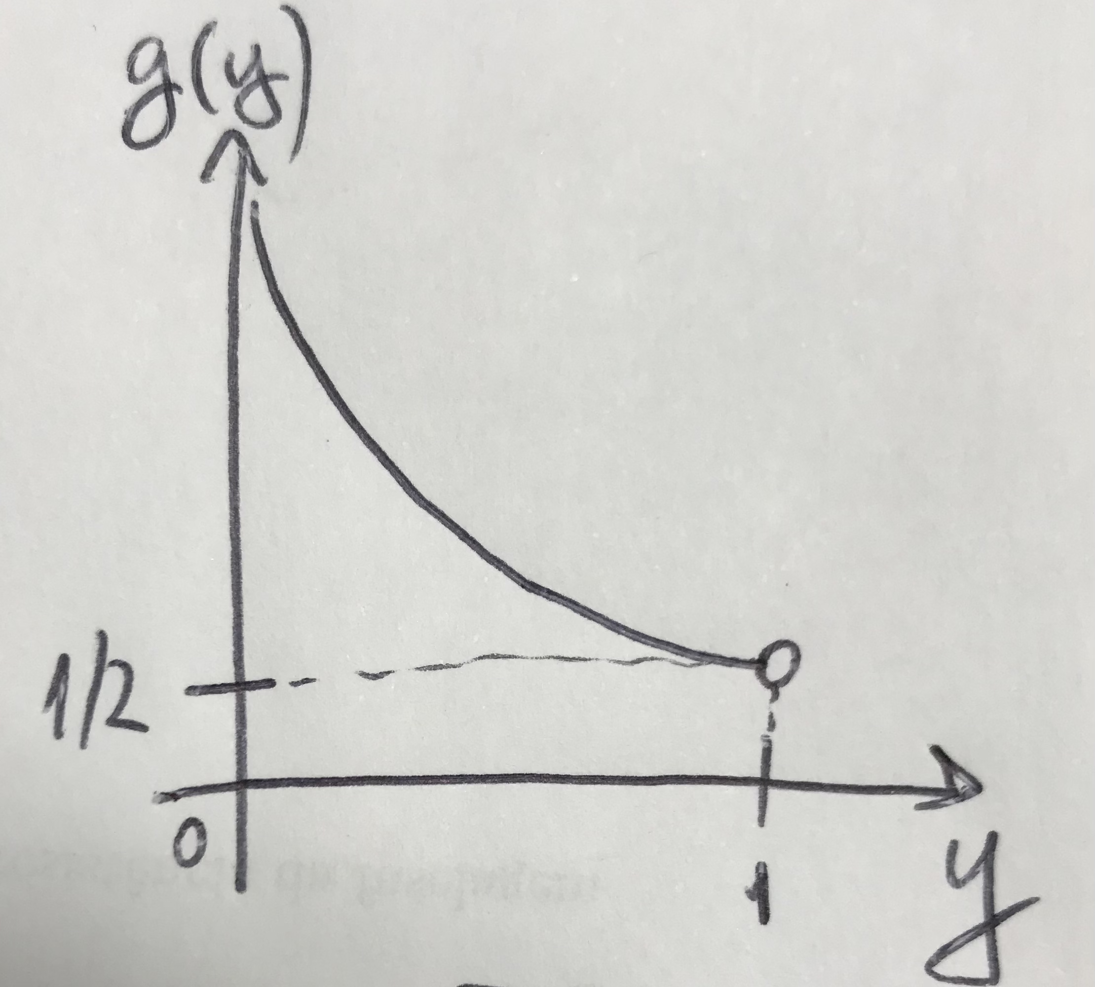 Finally, it is possible to graph \(g(y)\) by \(y\), verifying \(g(y) \in (1/2,\infty)\).