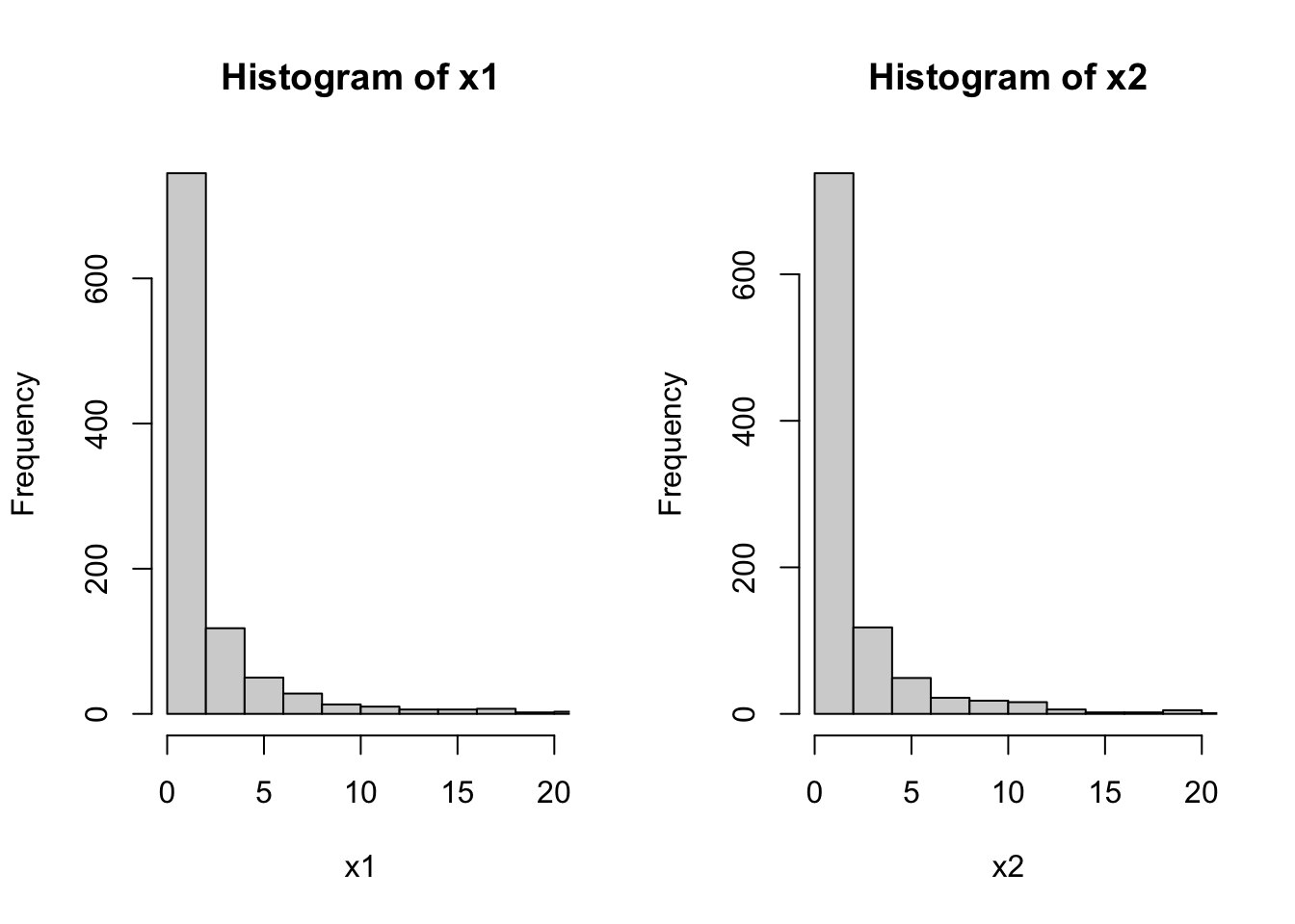 set.seed(999); x <- rexp(1000, 1)