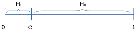 It is also possible to consider more precise ways of evaluating probabilistic distances from test statistics than simply indicating ‘above’ or ‘below’ a critical value. According to the classic paradigm, a measure is assigned that varies between 0 and 1, called p-value. This measure has multiple definitions and is still widely discussed in the literature, often being misinterpreted. The following definition is based on (Carlos Alberto de Braganca Pereira and Wechsler 1993, 161). Consider an experiment producing data \(x\), an observation of \(X\), to test a simple hypothesis \(H_0\) versus \(H_1\).
